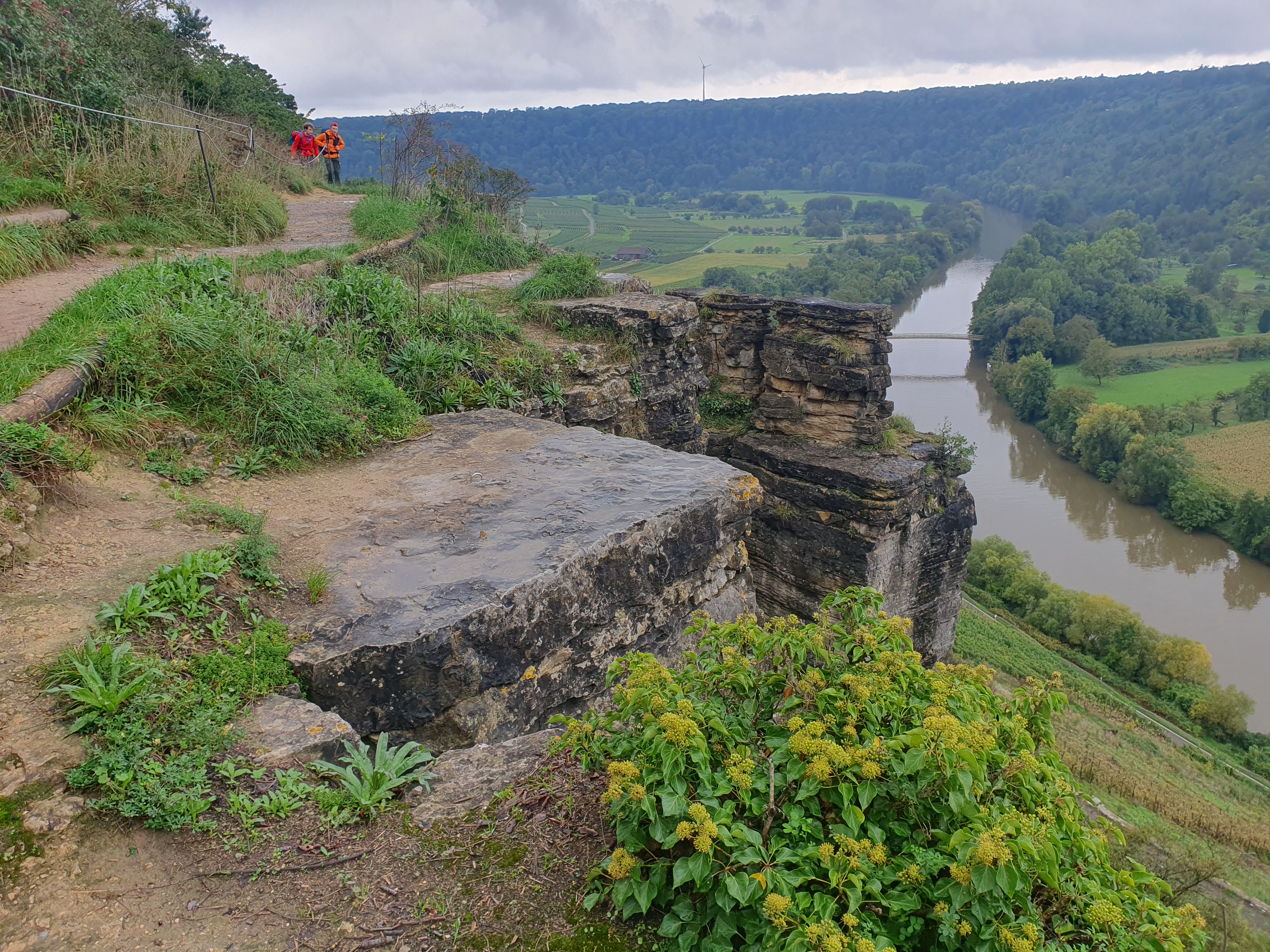 Nach einer ca. 1-stündigen Wanderung durch Streuobstwiesen und Weinberge sind wir am höchsten Punkt auf 270 m ü NN. angekommen, wo eine schöne Aussicht auf den Neckar und eine Stärkung warteten.