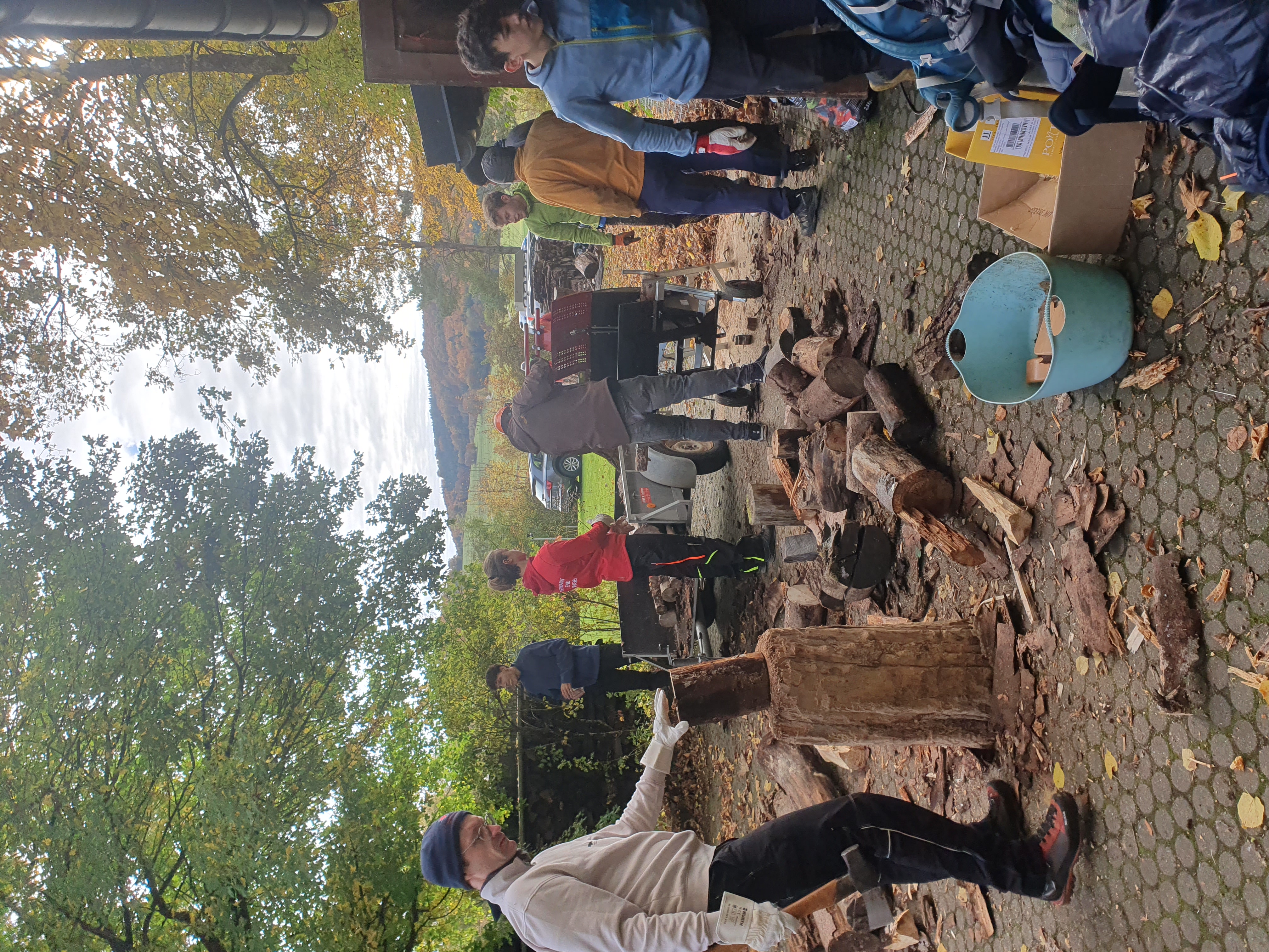 Es mussten verschiedene Arbeiten erledigt werden: z. B. Putzen der beiden Hütten (Fenster, Betten, Bäder, Fußboden), Holzsägen, -spalten und -stappeln und das herabgefallene Herbstlaub zusammenrechen und abfahren. Hierzu wurden die Jugendlichen, die Aktiven und die erschienenen Senioren in verschiedene Gruppen aufgeteilt.